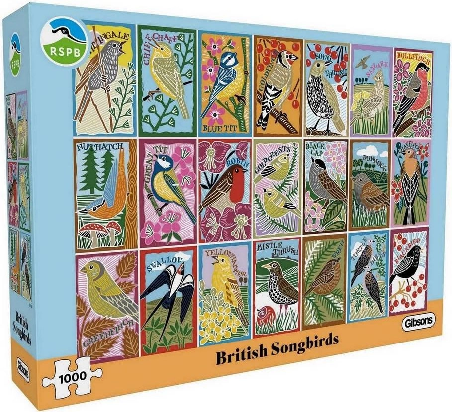 Objavte krásu britskej prírody s kvalitným puzzle GIBSONS z kolekcie RSPB. Ilustrácia zachytáva britských spevákov v celej ich kráse a podporuje ochranu prírody. Puzzle je vyrobené zo 100 % recyklovaných materiálov a po poskladaní meria približne 68 × 49 cm.