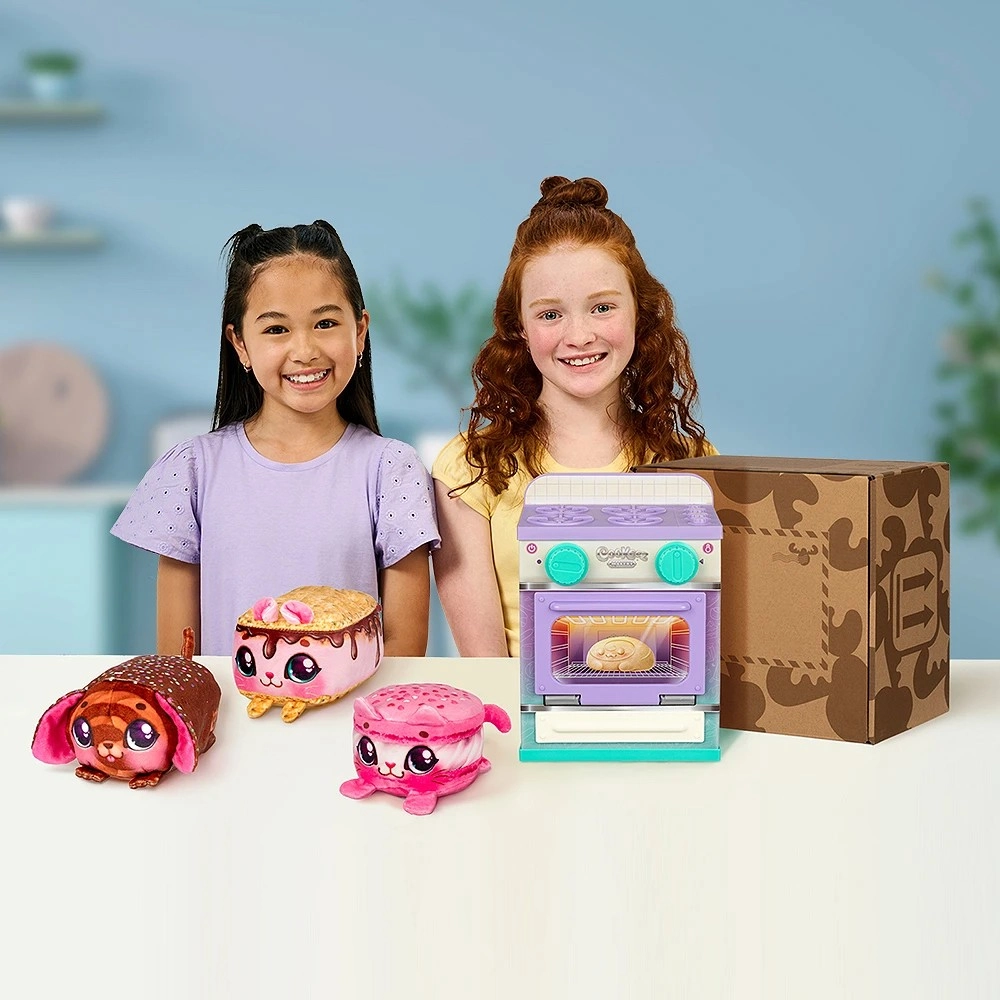 Zmiešajte priložené „ingrediencie“, vytvarujte vlastný výpek pomocou formičiek a vložte do rúry. Po chvíľke sa dvierka otvoria a vo vnútri čaká rozkošný, voňavý plyšový maznáčik pripravený na objatie. Deti si užijú rolové varenie, radosť z objavovania aj precvičenie jemnej motoriky.