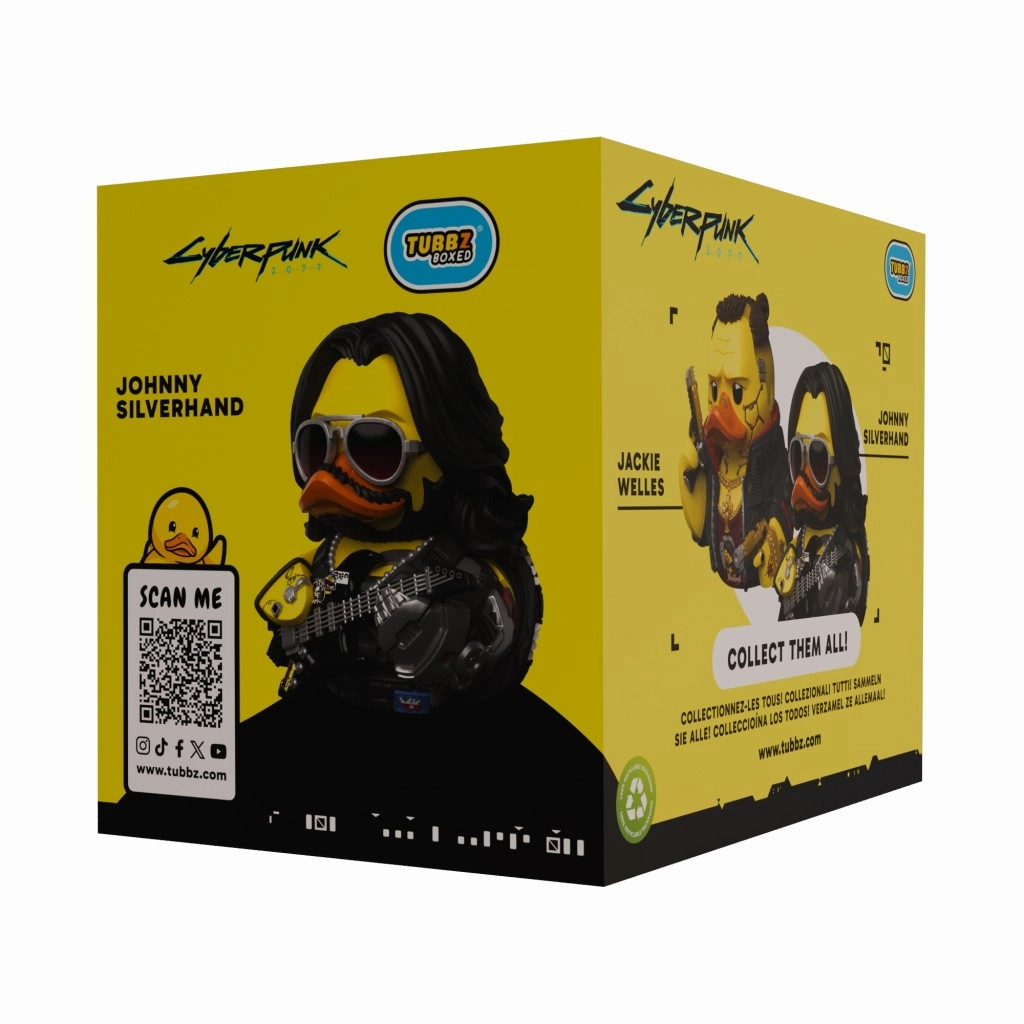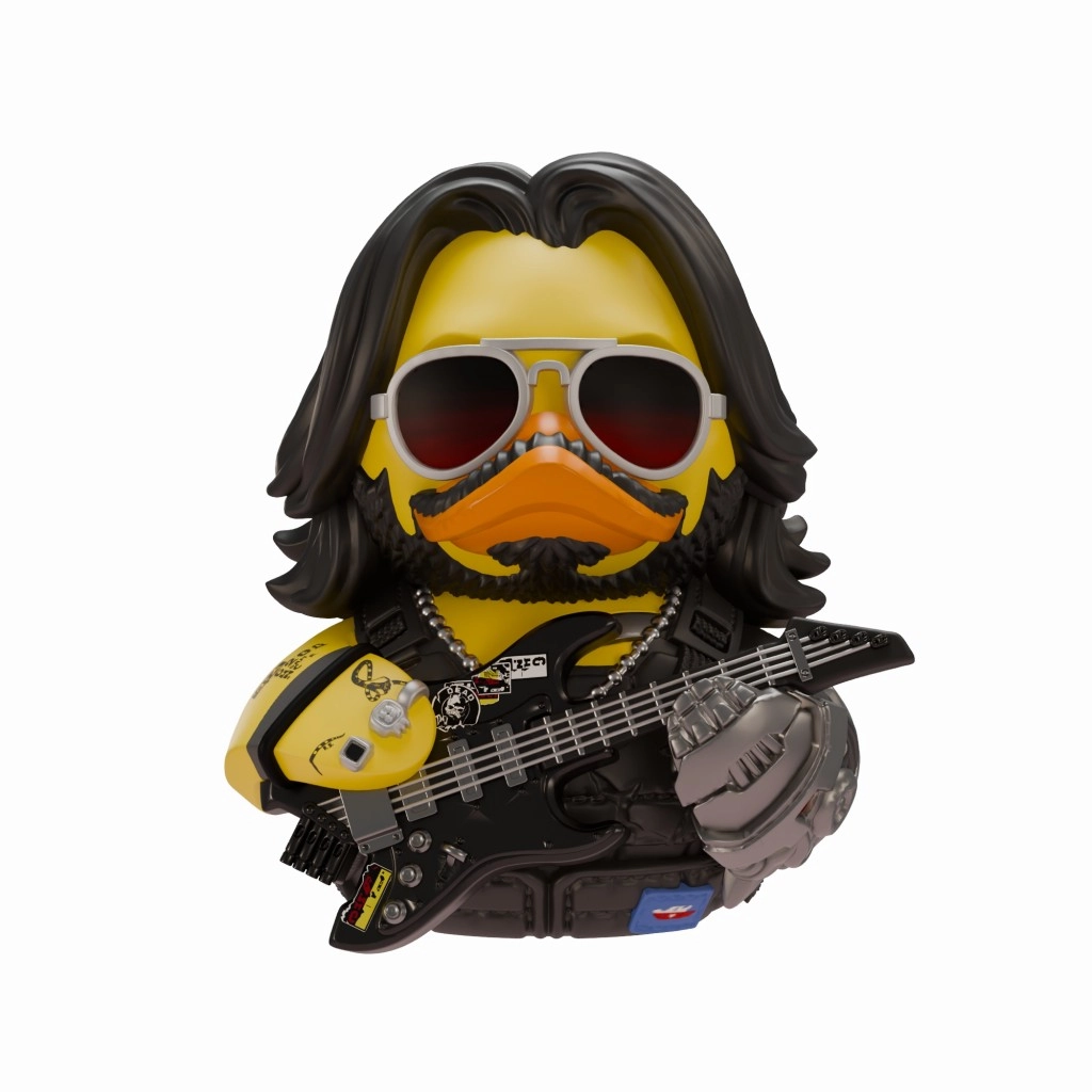 Legendárna postava Johnny Silverhand zo sveta CYBERPUNK 2077 ako štýlová zberateľská Tubbz kačička. Precízne detaily, kovová paža, ikonické slnečné okuliare a elektrická gitara dodávajú figurke výrazný charakter. Vyrobené z odolného plastu pre dlhú životnosť – ideálne ako dekorácia aj darček pre fanúšikov.