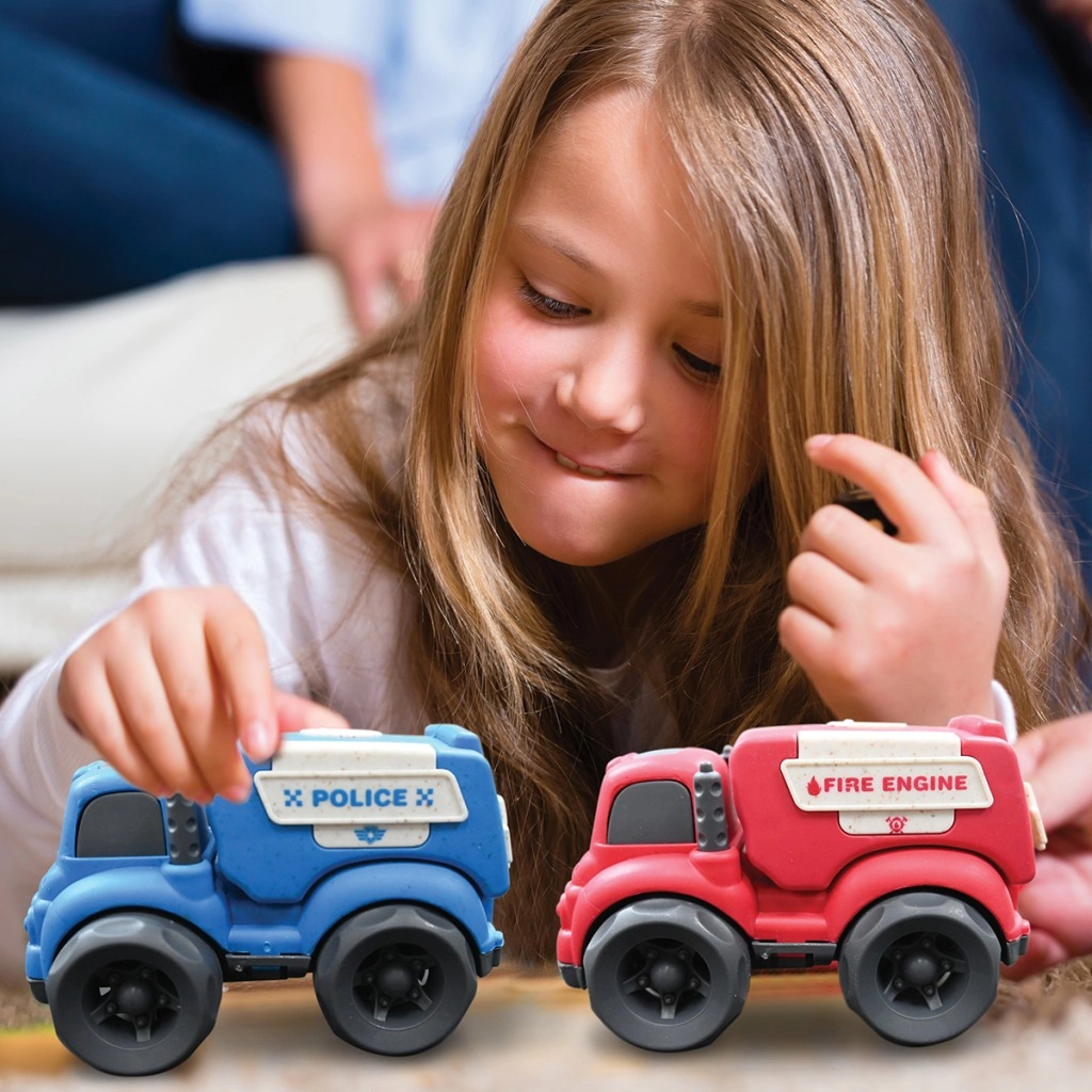 Autíčka sú vyrobené z bioplastu s podielom pšeničnej slamy, čo znižuje dopad na životné prostredie a zároveň zachováva vysokú odolnosť.