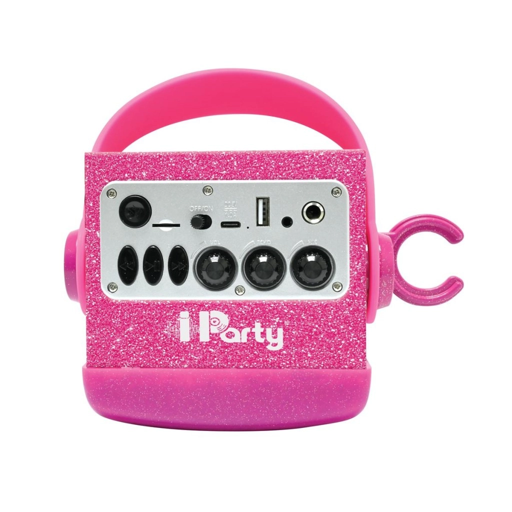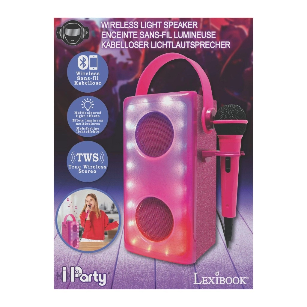 Rozbehnite domácu párty kedykoľvek a kdekoľvek s kompaktným karaoke reproduktorom LEXIBOOK iParty. Ponúka Bluetooth pripojenie, ružový káblový mikrofón v držiaku na boku, viacfarebné LED efekty na čelnej strane a praktickú rukoväť na jednoduché prenášanie. Vďaka nabíjateľnej NiMH batérii si deti aj mládež užijú hodiny zábavy – od počúvania hudby až po vlastné spevácke vystúpenia.