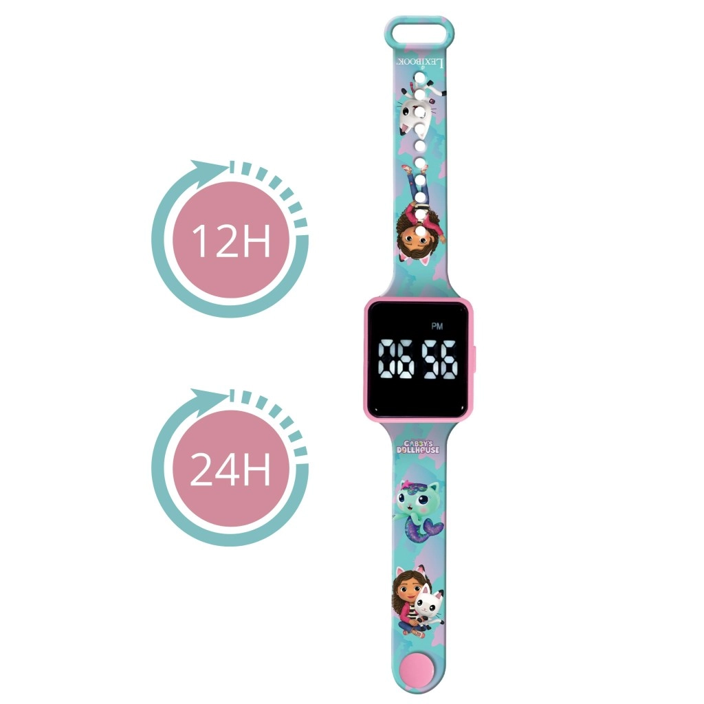 Roztomilé digitálne hodinky LEXIBOOK s motívom Gabinkin kúzelný domček potešia každého malého fanúšika. Ponúkajú prehľadný LED displej, voľbu 12/24 h formátu a praktickú funkciu budíka. Mäkký a pružný remienok s farebnými postavičkami sa ľahko prispôsobí detskej ruke a zaisťuje pohodlné nosenie každý deň. Batéria CR2032 je súčasťou balenia, takže hodinky možno ihneď používať.