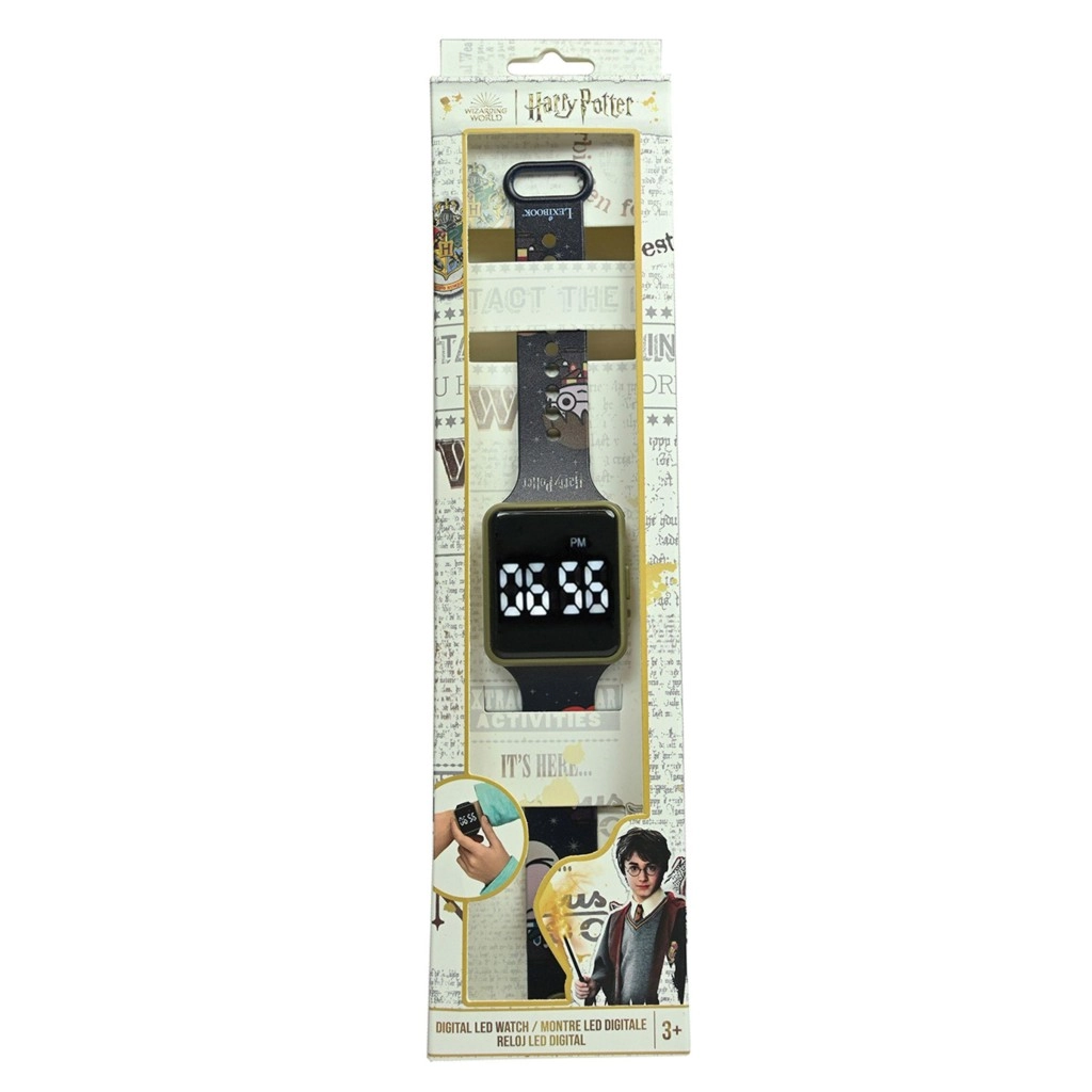 Štýlové digitálne hodinky pre deti s motívom HARRY POTTER ponúknu jasný LED displej, prepínanie medzi 12/24-hodinovým formátom, praktický budík a pohodlný nastaviteľný remienok. Ideálne pre malých čarodejníkov od 3 rokov – učenie času bude zábava.