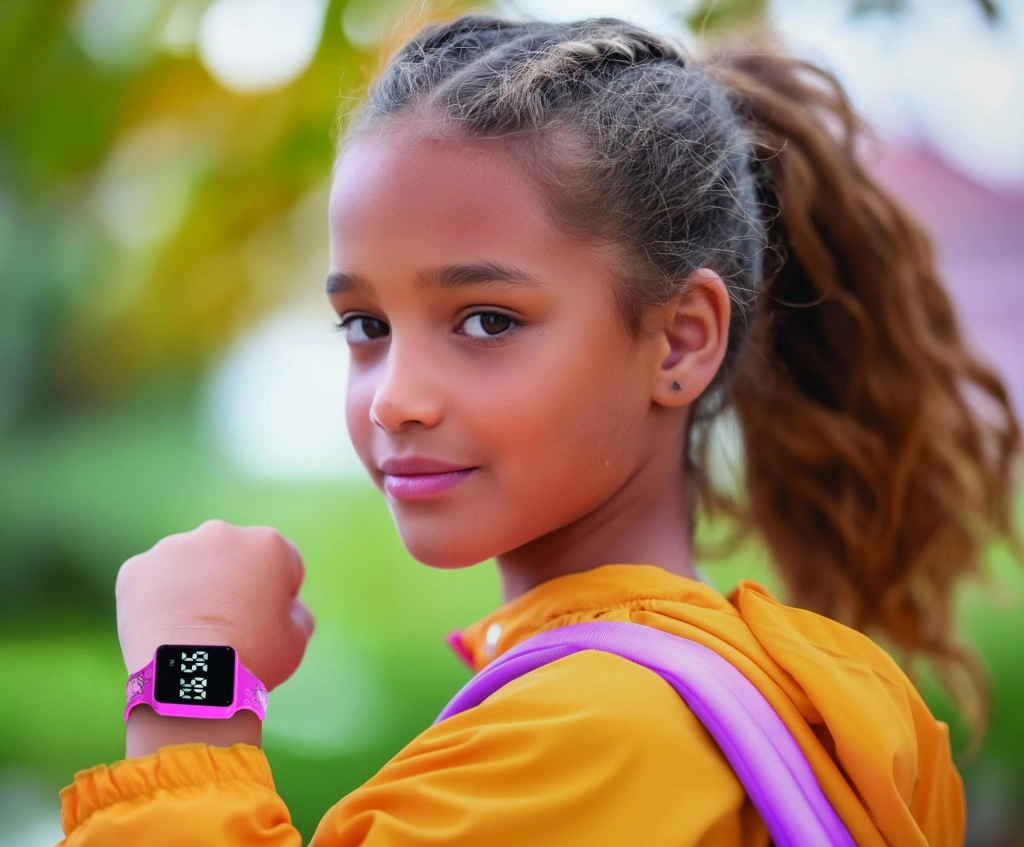 Mäkký silikónový pásik s viacerými dierkami sa ľahko prispôsobí detskému zápästiu a dobre drží pri každodennom nosení.