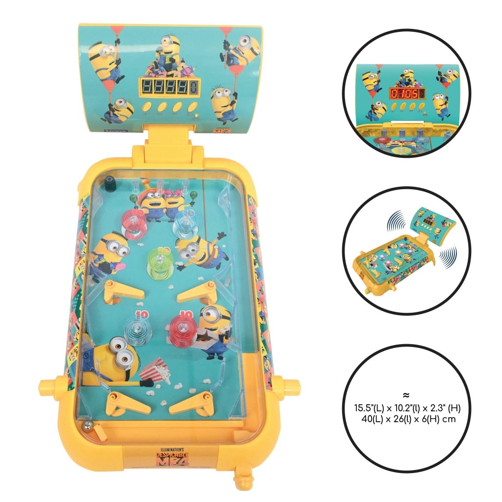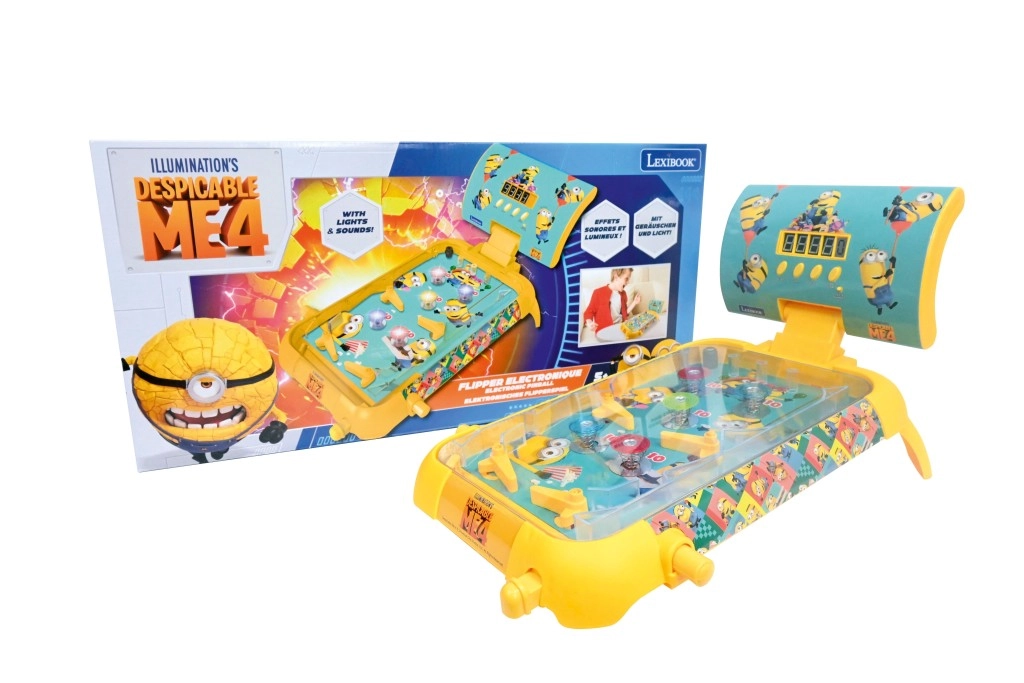 Elektronický stolový pinball Lexibook MINIONS kombinuje klasickú pinballovú akciu s modernou elektronikou. Žlté telo, farebné herné pole a ikonické postavičky Mimoňov vytvárajú atraktívny dizajn, ktorý deti okamžite zaujme. Vďaka kompaktným rozmerom je ideálny na stôl do detskej izby aj na cesty.