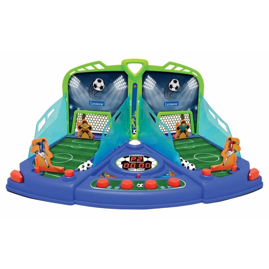Elektronický stolný futbal LEXIBOOK prináša dynamickú hrateľnosť a autentickú atmosféru zápasu vďaka LED osvetleniu, zvukovým efektom a centrálnemu digitálnemu panelu na zobrazenie skóre a času. Dve oddelené ihriská s bránkami, figúrkami hráčov a brankármi vytvárajú férové podmienky pre napínavé súboje.