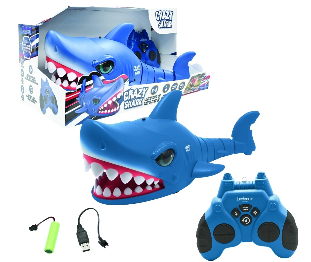 Zažite akčnú zábavu s RC hračkou Lexibook – realistický modrý žralok s pohyblivým chvostom, hudobnými efektmi a jednoduchým ovládaním. Vďaka ergonomickému ovládaču, rýchlosti až 5 km/h a odolnej konštrukcii hladko jazdí po podlahe aj vonku. V balení nájdete nabíjateľné batérie a USB nabíjací kábel pre pohodlné používanie.