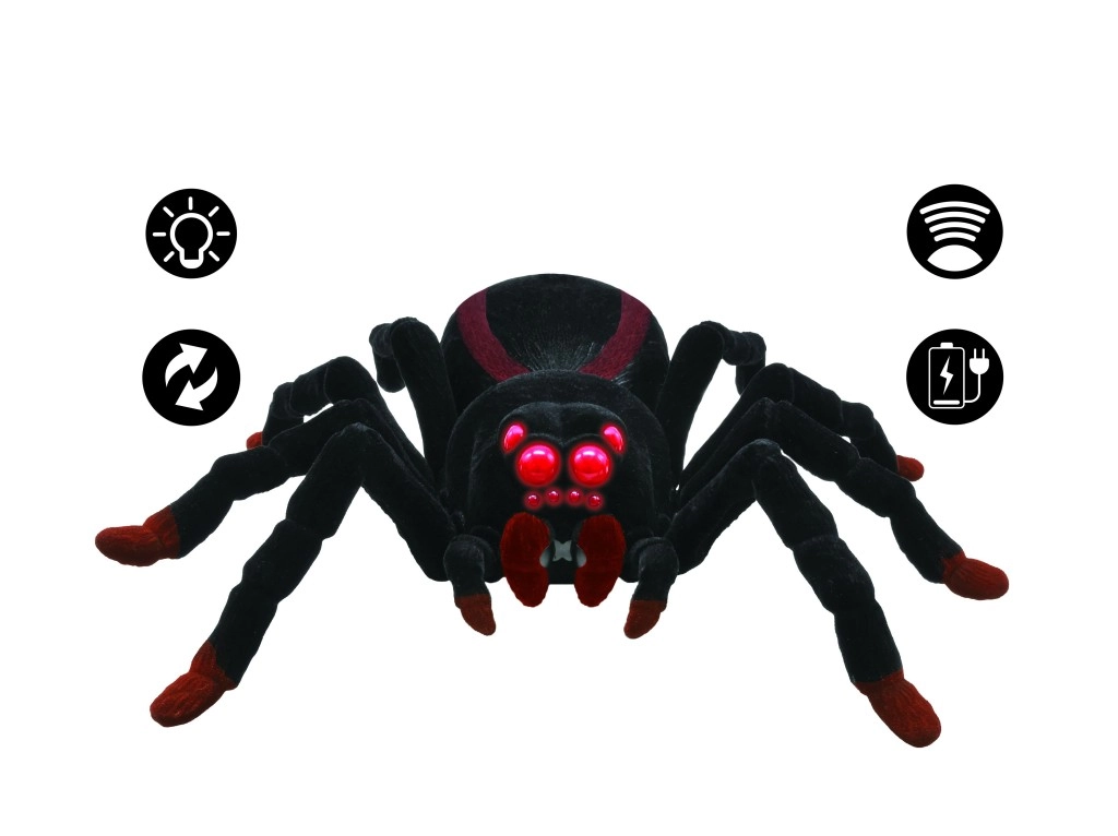 Tento realistický RC pavúk verne napodobňuje pohyb skutočného článkonožca a okamžite upúta pozornosť. Mäkký plyš dodáva hračke autentický vzhľad aj príjemný dotyk, zatiaľ čo výrazné červené LED oči podčiarkujú strašidelný efekt – perfektné na zábavu, žarty aj tematické oslavy.