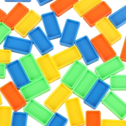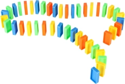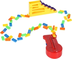 Obsah balenia: 126× kocky domina (4 farby), 2× lietadlo s vystreľovačom, diely tratí, 2× gulička, 1× figúrka, 12× podstavec pre domino, 52× vzdelávacie samolepky (písmená, čísla, matematické znaky).