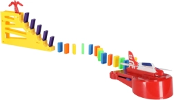 Táto kreatívna sada pre deti kombinuje nadčasovú zábavu s dominom a vzrušenie z leteckých štartov. Postavte dráhu z kociek, spustite sekvenciu a sledujte, ako energia prevrátených dielikov aktivuje mechanizmus vystreľovača – lietadlo vyletí a postará sa o veľkolepé finále. Ideálne na samostatnú aj skupinovú hru doma i v škole.