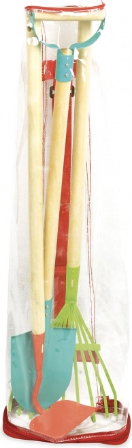 V balení nájdete všetko potrebné: rýľ na rytie a presádzanie, hrable na upratovanie lístia a zarovnanie pôdy, motyku na kyprenie a pletie a tiež ochranné rukavice s pružným lemom pre pohodlné nosenie. Ideálne pre deti od 3 rokov.
