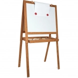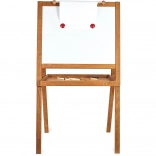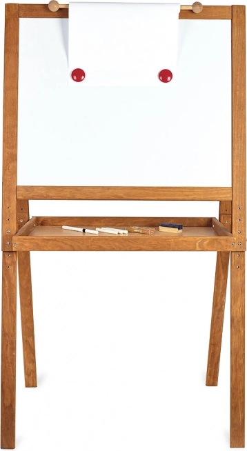 Obojstranná tabuľa Vilac je ideálnym nástrojom pre rozvoj detskej kreativity a vzdelávania. Jedna strana ponúka čiernu plochu pre kreslenie kriedou, zatiaľ čo druhá je magnetická a vhodná pre fixky. Vďaka robustnému drevenému rámu poskytuje stabilitu a bezpečnosť pri používaní. Tabuľa má tiež nastaviteľnú výšku, ktorá sa prispôsobí potrebám vašich detí až do 120 cm.
