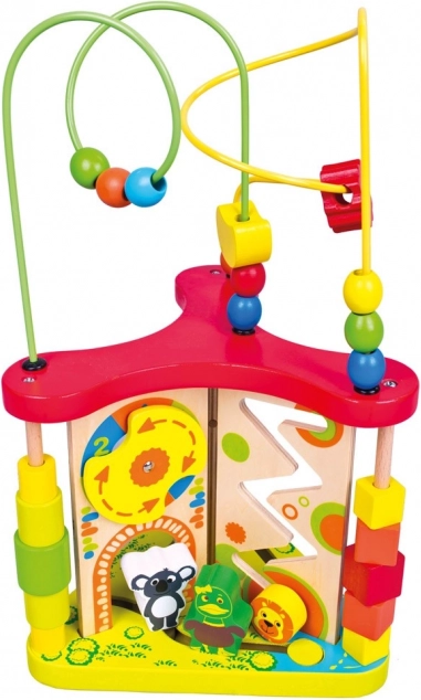 Objavte zábavný a odolný drevený aktivítový labyrint, ktorý podporuje rozvoj detí od 18 mesiacov. Hračka ponúka farebný korálkový labyrint, posuvné zvieratkové figúrky a ďalšie interaktívne prvky na tréning jemnej motoriky, poznávacích schopností, rozpoznávania farieb a čísel aj vnímania dennej doby.