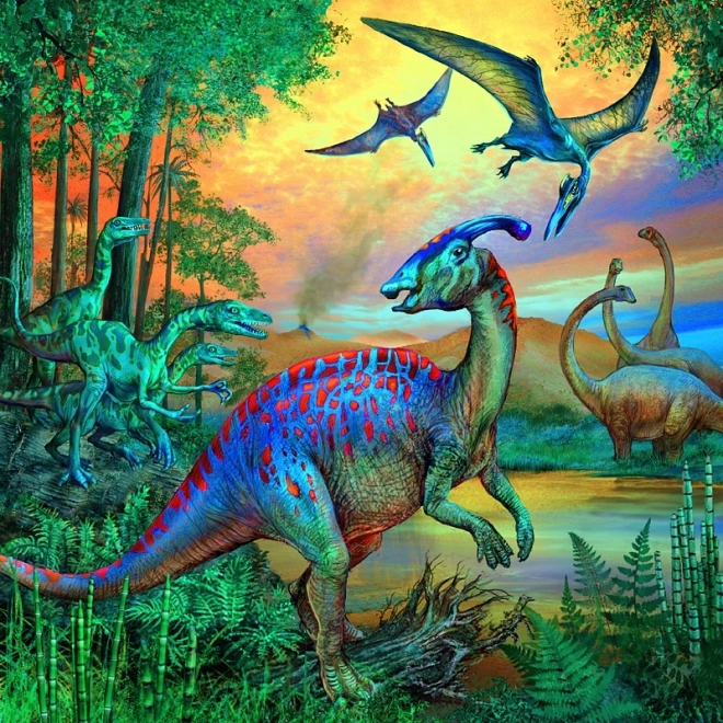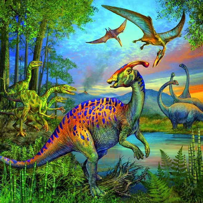 Set Ravensburger 3x49 dielikov prináša tri krásne ilustrované scény s dinosaurami v živých farbách. Každé balenie obsahuje tri samostatné puzzle, vďaka ktorým si deti precvičia sústredenie, jemnú motoriku aj vnímanie detailov. Prémiové materiály a precízny výsek garantujú perfektný zážitok zo skladania.