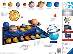 Vďaka kvalitnému spracovaniu RAVENSBURGER je skladanie plynulé, zábavné a poučné. Hotové planéty môžete zavesiť alebo vystaviť na stojanček a vytvoriť si doma efektný model vesmíru. Súčasťou je aj obojstranný plagát s informáciami (popisky v cudzom jazyku) a obrázkový návod na ľahký začiatok.
