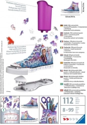 Geniálne spojenie zábavy a praktickosti: 3D puzzle v tvare vysokej tenisky s obľúbenými hrdinkami z filmu Frozen 2. Vďaka pevným plastovým dielikom postavíte odolnú dekoráciu, ktorá slúži ako stojan na perá, pastelky aj nožnice – bez lepidla, jednoducho a s perfektným výsledkom.