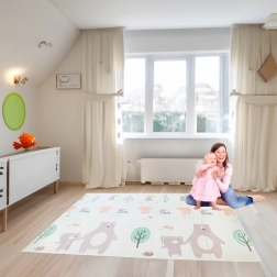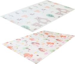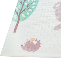 Podložka disponuje obojstranným potlačou: na jednej strane sú roztomilé zvieratká ako medvede a králičky, zatiaľ čo na druhej sa objavia ježkovia a líšky.