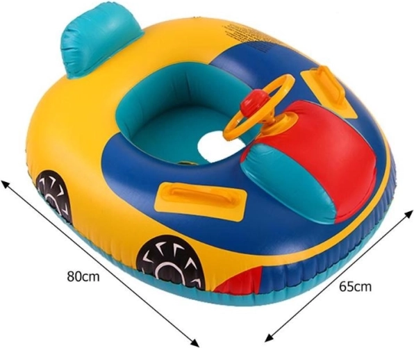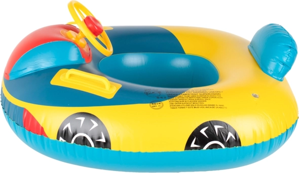 Detský nafukovací kruh v tvare auta ponúka odolnosť a bezpečie vďaka kvalitnému PVC materiálu. Je ideálnym pomocníkom pri zoznamovaní detí s vodným prostredím. S otočným volantom a klaksónom budú mať malí plavci ešte viac zábavy a vďaka špeciálnemu sedadlu s otvormi sa dieťa cíti bezpečne. Očarujúci farebný dizajn a tvar auta dodávajú výrobku atraktivitu pre deti.