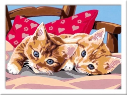 Staňte sa na chvíľu maliarom a vytvorte si vlastný obraz s motívom mačiatok. Stačí postupne vyfarbovať očíslované plochy príslušnými farbami a sledovať, ako pred vami vzniká krásne dielo. Súčasťou sady je pevné plátno 24 × 18 cm s predlohou, sada akrylových farieb, kvalitný štetec, kartónový stojanček na kelímky s farbami a rámik – hotový obraz tak ľahko vystavíte.