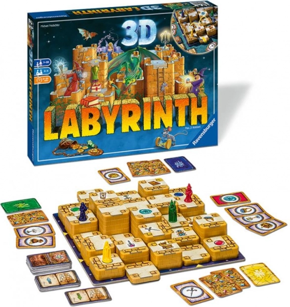 Objavte novú dimenziu zábavy s hrou Labyrinth 3D od RAVENSBURGER! Klasický princíp bludiska je obohatený o tretí rozmer – chodby vedú hore aj dolu a vy pomocou veží, kúziel a rún meníte cestu k vytúženým pokladom. Vyhráva ten, kto najrýchlejšie nazbiera všetky poklady a preukáže chytrosť aj stratégiu.