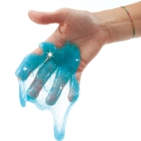 Modrý, trblietavý sliz je mäkký a poddajný, ideálny pre hmatové hry a precvičenie zručností.