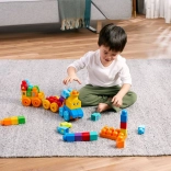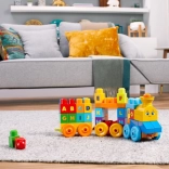 Farebné kocky s písmenami podporujú rozpoznávanie tvarov písmen a prvé skladanie slov. Deti si prirodzene rozvíjajú slovnú zásobu aj logické myslenie.