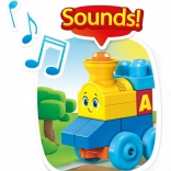 Objavte radosť z učenia s hudobným vláčikom s písmenkami od MEGA BLOKS. Deti si môžu spojiť tri vagóniky, naložiť farebné kocky s písmenami a pri skladaní vláčika sa hravo učiť abecedu aj prvé slová. Interaktívny komín pridáva zábavné zvuky vlaku a veselú pesničku, ktoré udržia pozornosť a podporia zmyslové vnímanie.