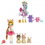 Ponorte sa do čarovnej ríše Enchantimals, kde každá bábka má svojho zvieracieho spoločníka a dlhodobé priateľstvo. Tento balíček ponúka dve možnosti: Cambrie Cow s kravičkou Ricottou a dvoma teľatami alebo Dinah Duck s kačkou Slosh a troma malými kačiatkami. Každá bábka má odnímateľné oblečenie a topánky, čo umožňuje kreatívny styling pri hre.