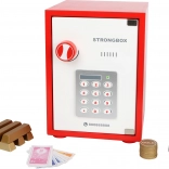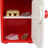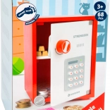 Zábavný a vzdelávací drevený sejf od značky small foot pomáha deťom objavovať svet peňazí a bezpečného ukladanía pokladov. Sejf sa otvára na kombináciu, má otočný ciferník so zvukom a stláčacie tlačidlá. Súčasťou je bohatá sada príslušenstva – euro bankovky, zlaté a strieborné mince aj drevené zlaté tehličky. Ideálne na hraníe rolí, rozvoj finančnej gramotnosti a jemnej motoriky.
