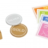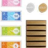 Súčasťou sú euro bankovky, zlaté a strieborné mince aj drevené zlaté tehličky. Skvelé na učenie hodnoty peňazí, počítanie a role-play bankárov aj zákazníkov.