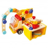 Objavte zábavu na stavbe s multifunkčným nákladným autom BINO, ktoré kombinuje drevo a plast pre odolnosť a nízku hmotnosť. Súčasťou je figúrka vodiča, vyklápacia korba a bohaté príslušenstvo – kľúč, kladivko, skrutkovač a stavebnicové diely pre kreatívne stavanie. Hra rozvíja jemnú motoriku, predstavivosť a podporuje role-play malých staviteľov.