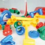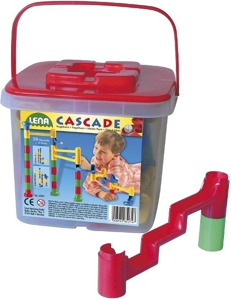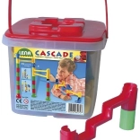 Stavebnica Cascade prináša farebnú kaskádu zábavy. Z 29 dielov možno vytvárať rozmanité guľôčkové dráhy, po ktorých guľôčka sviští cez rôzne úrovne a prekážky. Praktické vedierko s rúčkou uľahčuje ukladanie aj prenášanie, takže sa deti môžu hrať doma aj na cestách.