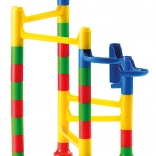 Objavte kreatívnu stavebnicu Cascade v praktickom vedierku s rúčkou. Deti môžu skladať vlastné dráhy a potom púšťať guľôčku, ktorá putuje po rôznych úrovniach. Táto hračka rozvíja jemnú motoriku, logické myslenie a kreativitu – ideálna zábava pre malých konštruktérov.