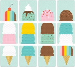 - 52 ilustrovaných kariet, 4 zmrzlinové autá