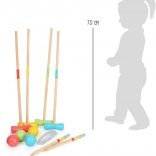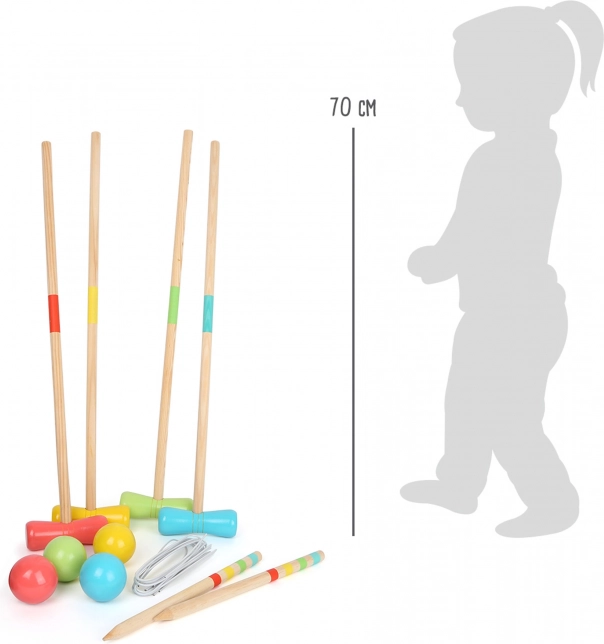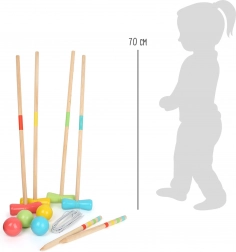 Drevený kroket Small foot Active je nadčasová hra pre deti aj dospelých. Bránky jednoducho zapichnete do trávnika a môžete ich rozostaviť s väčšími či menšími rozstupmi do rôznych formácií. Vďaka tomu si prispôsobíte pravidlá aj tempo hry svojim schopnostiam a veku hráčov.