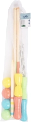 Sada je vyrobená zo 100 % FSC certifikovaného dreva, ktoré pochádza zo zodpovedne spravovaných lesov. Pri hre sa rozvíja jemná aj hrubá motorika, koordinácia oko–ruka a prirodzená tímová spolupráca. Drevené guličky musia prejsť všetkými bránkami v určenom poradí – kto to zvládne najrýchlejšie a s najmenším počtom úderov, vyhráva.