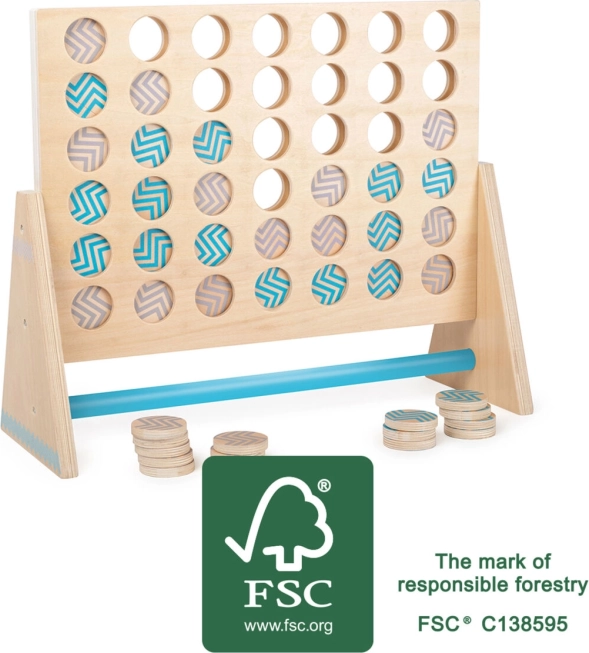 Objavte radosť z klasickej hry "Štyri v rade" vo XXL prevedení, vyrobenej z 100% FSC certifikovaného dreva. Táto zábava pre celú rodinu zlepšuje sústredenie a logické myslenie.