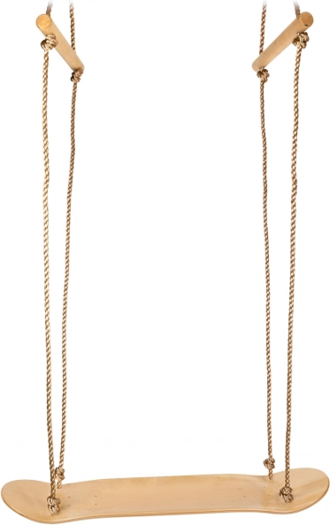 Zažite zábavu aj tréning rovnováhy s touto drevenou hojdačkou v tvare skateboardu. Deti môžu sedieť aj stáť ako na skutočnom prkne, bezpečnosť zvyšujú nastaviteľné madlá a protišmyková samolepka. Pevná preglejka, odolné nylonové laná s kovovými prvkami a nosnosť 100 kg zaručujú dlhú životnosť doma aj na záhrade.