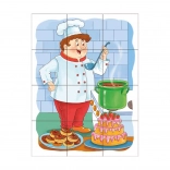Pomocou tejto skladačky deti poznajú rôzne profese, ako je napríklad policajt, kuchár, či farmár.