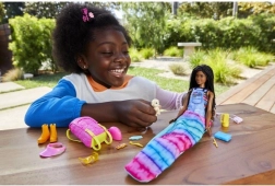 Set inšpirovaný seriálom BARBIE „It Takes Two“ prináša realistické doplnky a pútavé detaily, ktoré podporujú kreatívne rozprávanie príbehov. Bábika má moderný outfit do prírody – pruhované tričko, „džínsové“ nohavice s trakmi a žlté topánky – a je pripravená na dobrodružstvo so svojím šteniatkom.