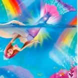 Bábika Barbie Dreamtopia morská víla je ideálna kamarátka do vane, bazéna aj na suché hranie. Jej nádherne spracovaný chvost sa po ponorení rozžiari v niekoľkých efektoch, takže každé kúpanie aj príbeh získajú čarovnú atmosféru. Svetlá aktivujete aj bez vody jednoduchým stlačením tlačidla na korzete.
