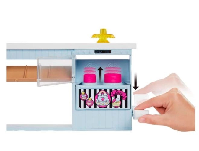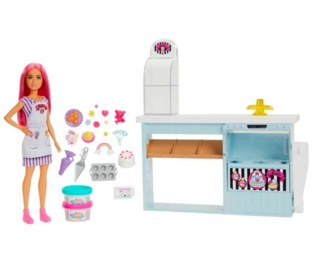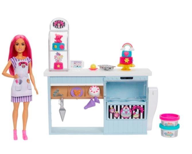 Set BARBIE cukráreň premení detskú izbu na voňavú pekáreň. Trojzónová stanica (pečenie – zdobenie – vystavenie) podporuje kreativitu a hru na role. Dve farby modelovacieho cesta umožnia deťom vytvárať tortičky a sušienky, ktoré „vyskočia“ po stiahnutí páčky v rúre a následne ich možno ozdobiť na podstavci.
