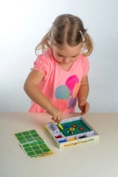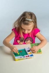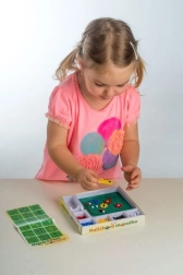 Táto mozaika je skvelou voľbou na prvé tvorenie. Deti pomocou pinzety vkladajú farebné guľôčky do podložky a vytvárajú jednoduché aj nápadité motívy. Aktivita podporuje trpezlivosť, koordináciu oko–ruka a rozvoj jemnej motoriky.