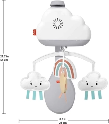Prineste do detskej izby Fisher-Price Detský kolotoč s hudbou a nočným svetlom s motívom oblakov a jemnými farbami, ktorý vyžaruje moderný dizajn a harmóniu. Tento kolotoč neboli upokojujúci prístroj je perfektný pre malé deti, ktoré potrebujú pomoc pri zaspávaní.