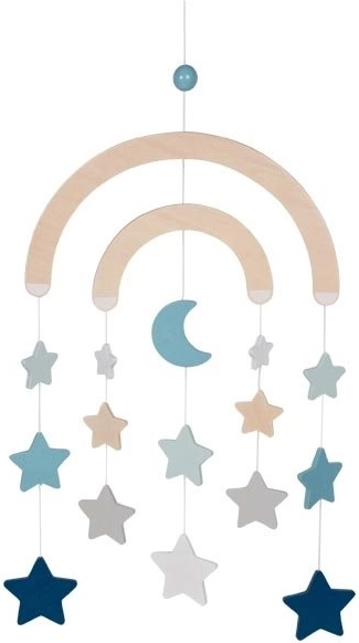 Obohaťte detskú izbu krásnym doplnkom – závesným kolotočom s motívom hviezdičiek. Tieto veselé tvary a prírodné materiály vytvárajú priateľskú a upokojujúcu atmosféru.