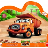 Skvelý darček pre malých fanúšikov nákladiakov, ktorý zároveň pomáha rozvíjať fantáziu a motoriku detí. Bezpečné a kvalitné puzzle z pevných dielikov.