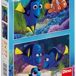 Objavte svet pod morom s puzzle sadou Dino Hľadá sa Dory 2×77. Dva rozdielne obrázky s hrdinami z filmu potešia všetkých malých fanúšikov a zaistia dlhé hodiny kreatívnej zábavy. Dieliky presne lícujú, dobre sa skladajú a odolný kartón zvládne aj časté používanie.
