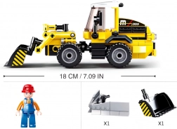 Táto stavebnica obsahuje podrobne navrhnutý žltý bager s čiernymi detailmi, umožňujúci realistické stavebné hry.