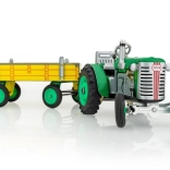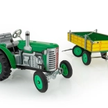Zelený traktor Zetor s valníkom a pružinovým strojčekom Kovap