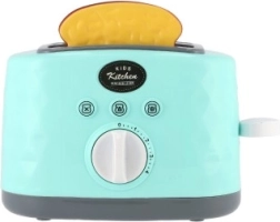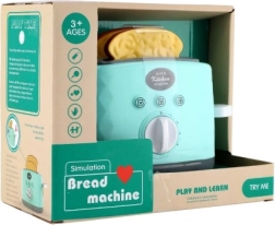 Toustovač v tyrkysovej farbe s realistickými funkciami tlačidiel a mechanikou pre zapojenie detského záujmu.